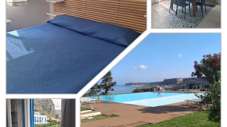 Central Apartment Macari Cala Azzurra Residence bietet eine komfortable Unterkunft mit Bergblick sowie einen Garten und einen Balkon. Eine Sonnenterrasse steht den Gästen ebenfalls zur Verfügung. Für die Bequemlichkeit der Gäste sind ein saisonaler Aussenpool und ein kostenloser Privatparkplatz vorhanden.