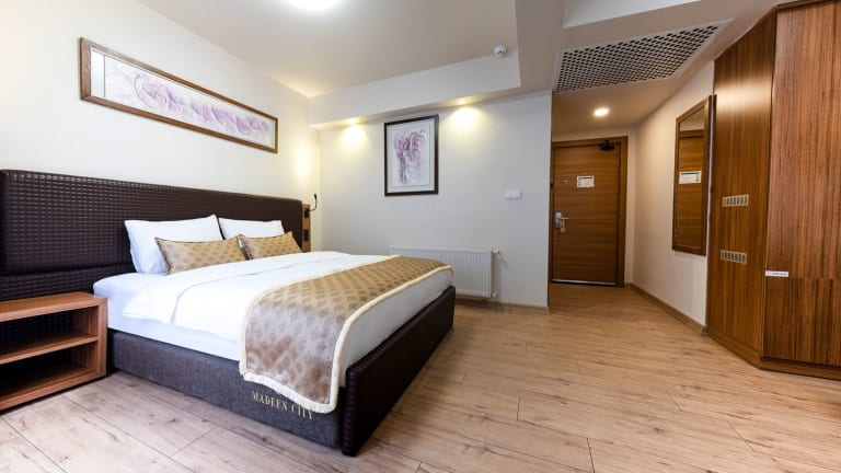 Die klimatisierten Zimmer im Madeen City Hotel sind komfortabel und geschmackvoll eingerichtet. Jedes Zimmer verfügt über einen Flachbild-Sat-TV, eine Minibar, einen Wasserkocher und kostenfreie Pflegeprodukte. Ein Schreibtisch steht ebenfalls zur Verfügung. Bettwäsche und Handtücher sind in allen Zimmern vorhanden.