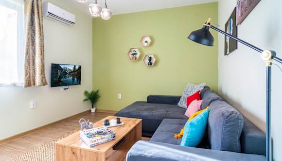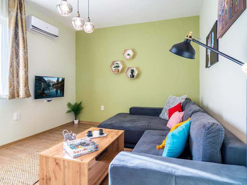 Die Unterkunft Madrid 90 Sq M 2BDR w Parking Spot near Metro, Serdika Mall bietet einen Balkon und ist ideal für Familien oder Gruppen. Sie ist mit Klimaanlage ausgestattet und umfasst zwei Schlafzimmer, ein Wohnzimmer sowie eine voll ausgestattete Küche. Kostenloses WLAN steht in der gesamten Unterkunft zur Verfügung, und eine Privatparkiermöglichkeit ist ebenfalls vorhanden.
