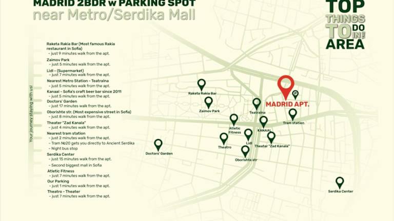 Die Unterkunft befindet sich in Sofia, weniger als 1,7 km von der Alexander-Newski-Kathedrale und 1,6 km von der St.-Kliment-Ohridski-Universität Sofia entfernt. Der Park Borisowa Gradina liegt 1,8 km entfernt und der U-Bahnhof Vasil Levski Stadion ist in 2,3 km erreichbar. Der nächstgelegene Flughafen ist der Flughafen Sofia, 4 km von der Unterkunft entfernt.