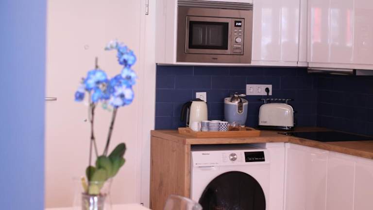 Die Unterkunft verfügt über eine voll ausgestattete Küche mit Kühlschrank und Kaffeemaschine, jedoch keine Informationen zu Verpflegungsmöglichkeiten vorhanden.