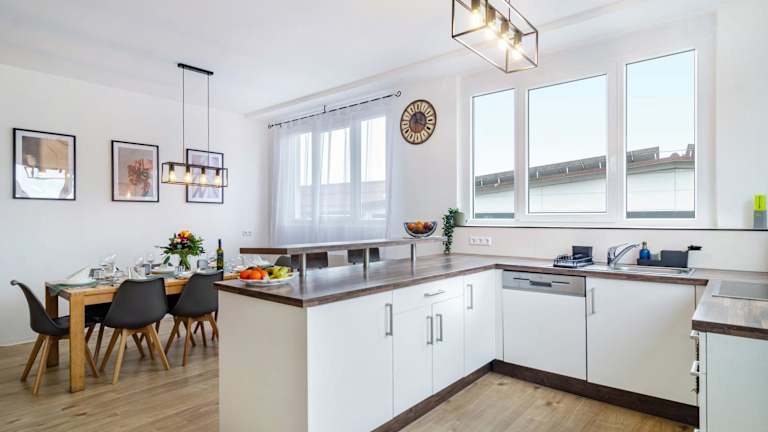Die Ferienwohnung verfügt über 3 Schlafzimmer, eine Küche mit Kühlschrank und Geschirrspüler sowie ein Badezimmer mit Dusche und kostenlosen Pflegeprodukten. Handtücher und Bettwäsche werden bereitgestellt. Des Weiteren steht eine Waschmaschine zur Verfügung.
