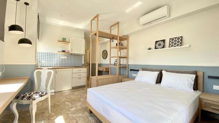 Die Wohneinheiten sind mit einem Balkon ausgestattet und verfügen über eine Klimaanlage. Sie bieten einen Flachbild-TV und ein eigenes Badezimmer, das mit einer Dusche und kostenlosen Pflegeprodukten ausgestattet ist. Ein Kühlschrank und eine Kaffeemaschine sind ebenfalls vorhanden.