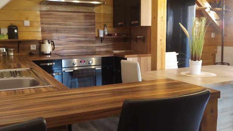 In der Unterkunft steht eine gut ausgestattete Küche zur Verfügung, welche einen Kühlschrank, Geschirrspüler und Ofen umfasst. Es gibt auch die Möglichkeit, Wein oder Sekt zu bestellen, wobei zusätzliche Gebühren anfallen können. Allgemeine Verpflegungsmöglichkeiten sind nicht angegeben.