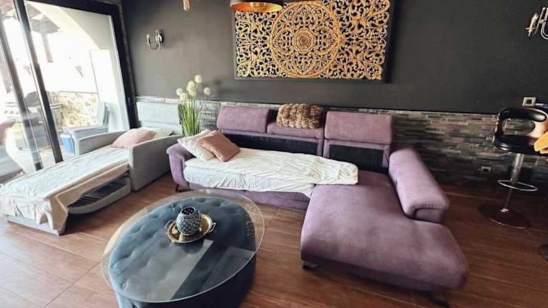 Die Villa besteht aus 3 Schlafzimmern, einem Wohnzimmer sowie einer voll ausgestatteten Küche mit Ofen und Wasserkocher. Es gibt 3 Badezimmer mit Badewanne oder Dusche und Haartrockner. Handtücher und Bettwäsche werden bereitgestellt. Zudem ist die Villa klimatisiert und verfügt über einen Balkon.