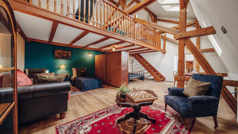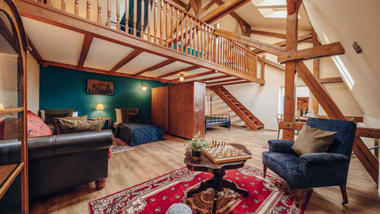 Die Unterkunft Magnificent historical penthouse in the heart of Prague bietet eine historische Atmosphäre und eignet sich ideal für einen Aufenthalt im zentralen Prag. Sie ist ausgestattet mit modernem Komfort und liegt in einer ruhigen Umgebung.