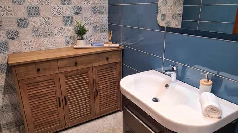 Die Villa enthält eine voll ausgestattete Küche mit Kühlschrank und Geschirrspüler, sodass Gäste die Möglichkeit haben, eigene Mahlzeiten zuzubereiten. Grillmöglichkeiten sind ebenfalls vorhanden. Für kleine Snacks und Erfrischungen wird ein angenehmes Ambiente geboten.