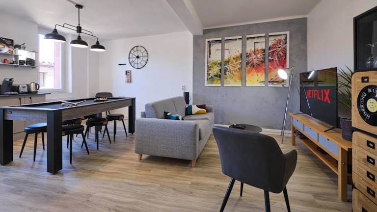 Die Unterkunft Magnifique*T4*centre ville*WIFI*Billard*Netflix* bietet eine 3-Zimmer-Wohnung im Stadtzentrum. Zu den Annehmlichkeiten zählen kostenloses WLAN und ein Billardtisch. Es handelt sich um eine Nichtraucherunterkunft, die von einem privaten Gastgeber geführt wird und strengen Hygieneauflagen entspricht.