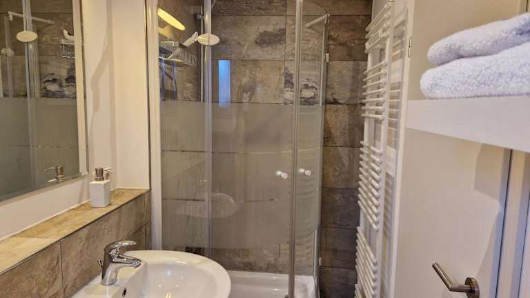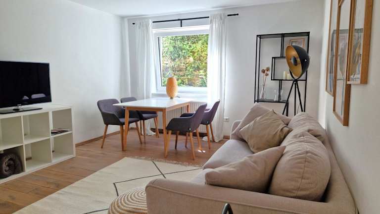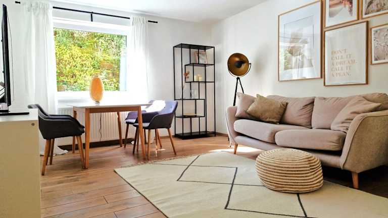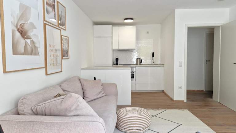 Die Ferienwohnung besteht aus 1 Schlafzimmer, einem Wohnzimmer sowie einer voll ausgestatteten Küche mit Kühlschrank und Kaffeemaschine. Ein Badezimmer mit Dusche und Haartrockner ist ebenfalls vorhanden.