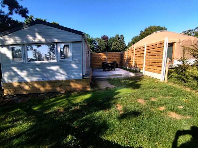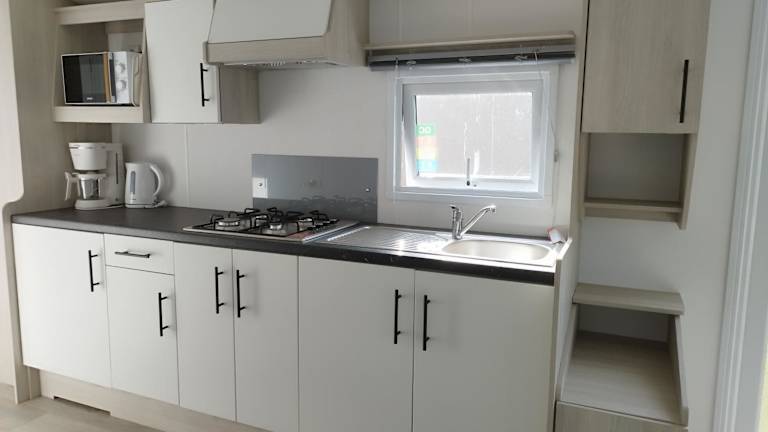 Das Ferienhaus bietet ein Schlafzimmer, ein Wohnzimmer und eine voll ausgestattete Küchenzeile mit Kühlschrank und Kaffeemaschine. Es verfügt über ein Badezimmer mit Dusche und Haartrockner. Handtücher und Bettwäsche werden bereitgestellt.