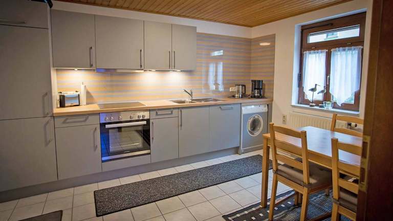 Die Ferienwohnung verfügt über ein Schlafzimmer, eine Küche mit Geschirrspüler und Ofen sowie ein Badezimmer mit Dusche, Haartrockner und Waschmaschine. Handtücher und Bettwäsche werden bereitgestellt. Die Unterkunft bietet zudem Annehmlichkeiten wie kostenfreies WLAN, Heizung und Gartenmöbel.