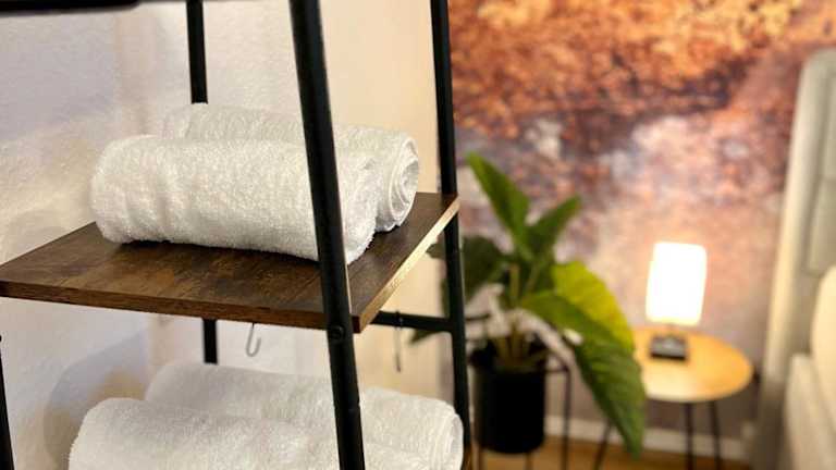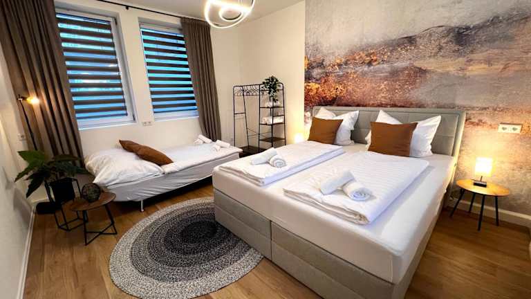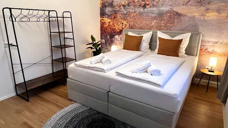Die Ferienwohnung umfasst 2 Schlafzimmer, ein Wohnzimmer sowie eine voll ausgestattete Küche mit Kühlschrank und Kaffeemaschine. Ein Badezimmer mit Dusche und kostenfreien Pflegeprodukten ist ebenfalls vorhanden. Handtücher und Bettwäsche werden bereitgestellt.