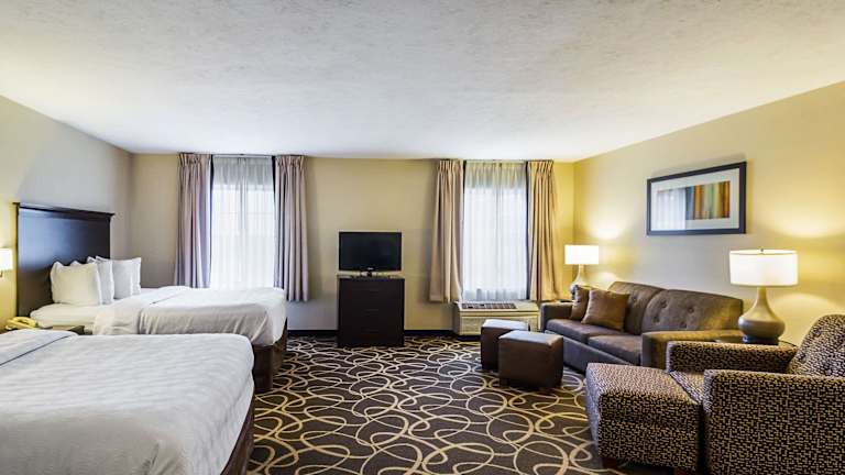 Das Mainstay Suites in Fargo bietet eine Vielzahl von Annehmlichkeiten, darunter eine Rezeption, einen Aufzug, eine Gepäckaufbewahrung, einen Safe und einen Getränkeautomaten. Zudem gibt es einen Kamin, der eine heimelige Atmosphäre schafft. Zur Ausstattung gehören ein Innen- und Aussenpool, ein Kinderpool, ein Whirlpool im Wellnessbereich sowie ein Fitnessstudio. Das Hotel akzeptiert verschiedene Kreditkarten, hat einen 24h-Sicherheitsdienst und bietet zahlreiche Dienstleistungen wie eine medizinische Betreuung und einen Wäscheservice an.