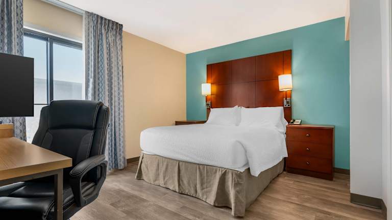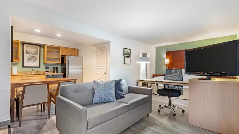 Die Zimmer sind mit einer Klimaanlage, Heizung, einem Doppelbett sowie einem Sofabett ausgestattet. Für zusätzlichen Komfort sorgen eine Mikrowelle, eine Tee-/Kaffeemaschine, ein Kühlschrank und ein Geschirrspüler. WLAN steht kostenfrei zur Verfügung und in den Badezimmern sind Dusche und Haartrockner vorhanden. Es sind auch rollstuhlgerechte Zimmer mit barrierefreien Badezimmern buchbar. Familien- und Nichtraucherzimmer sind ebenfalls verfügbar.