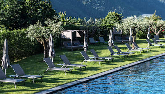 Das Mair am Ort Living ist eine Oase der Ruhe und erwartet Sie mit vier verschiedenen Zimmerkategorien für kuschelige Gefühlsmomente im Südtirol Urlaub. Der Wellnessbereich mit Bio Sauna, finnischer Sauna, Dampfbad, Eisgrotte, Ruheraum und einem 25 x 6 m langen, beheizten Sport-Outdoor Pool verspricht besondere Wohlfühlmomente. Unser großzügiger mediterraner Garten mit alten Olivenbäumen, Zypressen, Lavendel- und Rosmarinsträuchern lässt die Seele Kraft tanken. Was sich nicht verändert hat sind unsere Liebe zu den Gästen, unsere ehrliche Gastfreundschaft und die Freude an unserem Tun und Wirken. Erliegen Sie der Verzauberung und verbringen Sie wundervolle Urlaubstage bei uns im Mair am Ort Living in Partschins, nur 5 km oberhalb von Meran. Kraftvolle Ruhe, stilvolle Lebensart, entspannende Aktivität und ehrliche Gefühle, im Mair am Ort Living darf "Alles" ein bisschen persönlicher sein! Gerne verwöhnen wir Sie auch in unserem Restaurant Bussl & More direkt am Partschinser Dorfplatz! Jeden Mittwoch Abend Live-Music und kulinarische mediterrane Köstlichkeiten!