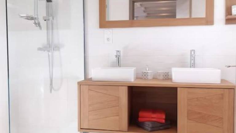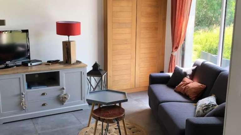 Das Ferienhaus verfügt über ein Schlafzimmer sowie eine voll ausgestattete Küche mit Kühlschrank und Geschirrspüler. Zudem sind ein Flachbild-TV und ein gemütlicher Sitzbereich vorhanden. Das Badezimmer ist mit einer Dusche ausgestattet, und Handtücher sowie Bettwäsche werden zur Verfügung gestellt.