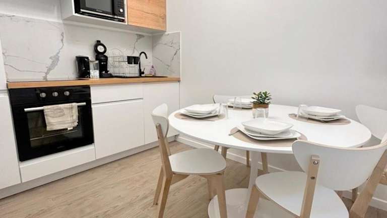 Die Ferienwohnung verfügt über ein Schlafzimmer und bietet Annehmlichkeiten wie einen Flachbild-TV, eine Waschmaschine sowie eine gut ausgestattete Küche mit Ofen. Zudem gibt es eine Terrasse zur Nutzung.