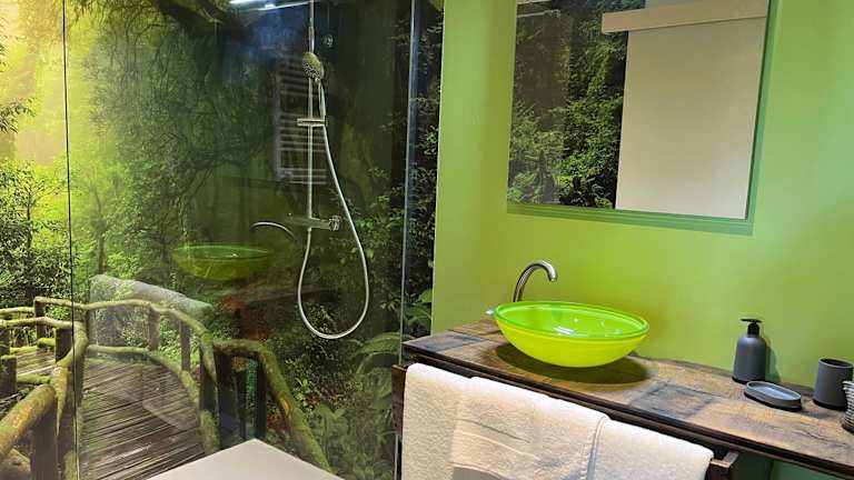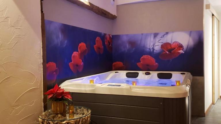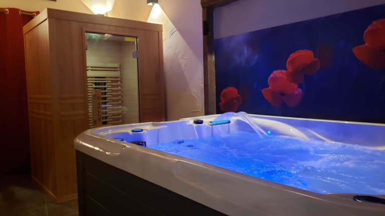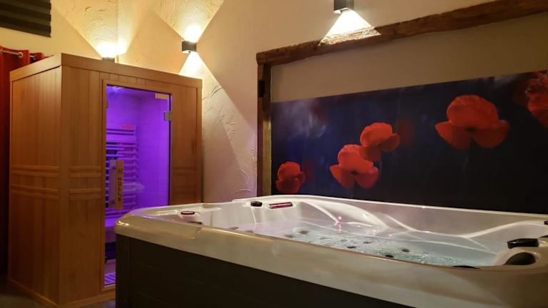 Das Ferienhaus Maison d'hôte avec sauna und jacuzzi à la campagne bietet Gästen eine heimelige Atmosphäre mit modernen Annehmlichkeiten. Zur Ausstattung gehören ein eigener Garten, Grillmöglichkeiten, ein Spa- und Wellnesscenter mit Sauna und Whirlpool. Das Haus hat eine gemütliche Terrasse mit Blick auf den Garten, in der Gäste entspannen können.
