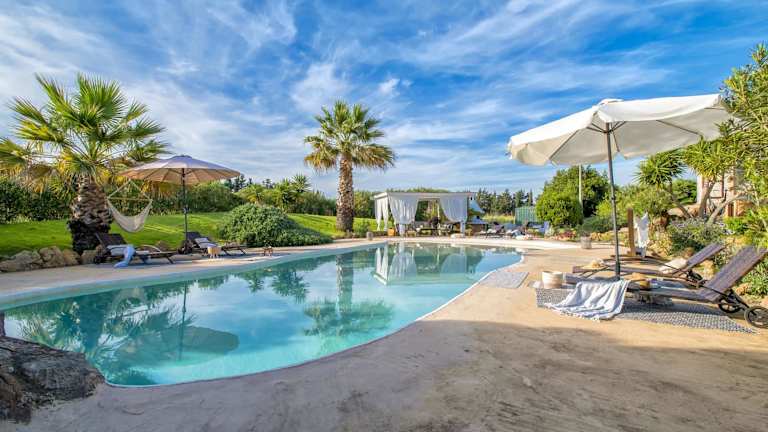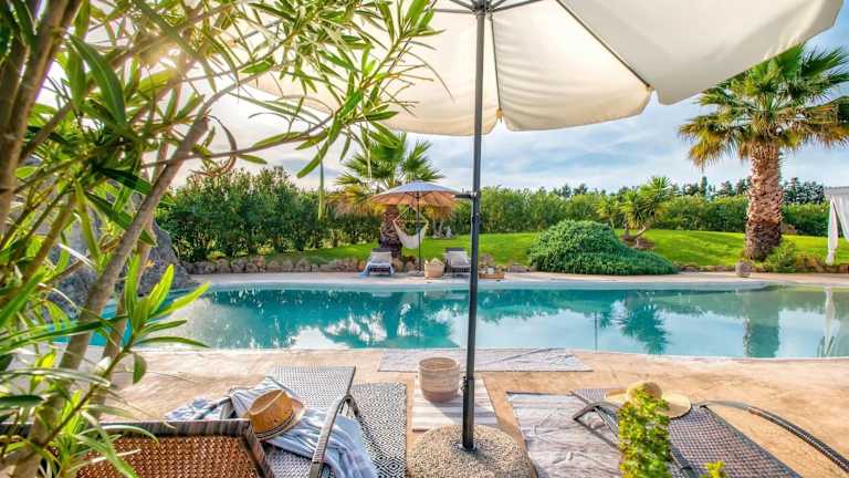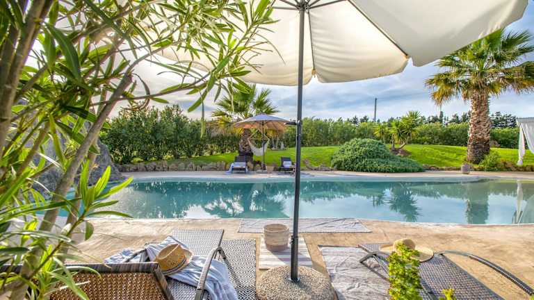 Die Villa umfasst 3 Schlafzimmer, ein Wohnzimmer und 2 Badezimmer. Zudem gibt es eine gut ausgestattete Küche und einen Satelliten-TV. Die Zimmer bieten Blick auf den Garten oder die Berge. Ein Balkon und eine Terrasse laden zum Verweilen ein. Die Unterkunft verfügt zudem über einen Pool und einen Kinderspielplatz.
