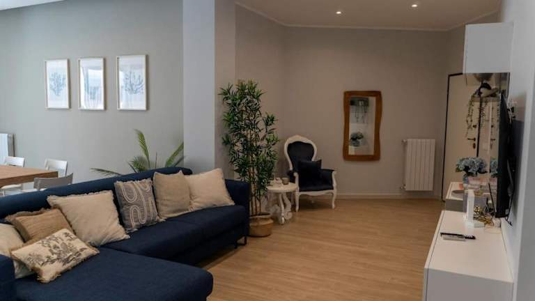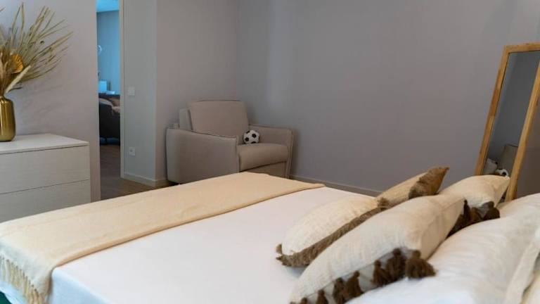 Die Ferienwohnung besteht aus zwei Schlafzimmern, einem Wohnzimmer und zwei Badezimmern mit Bidet und Dusche. Sie bietet Platz für bis zu vier Personen. Handtücher und Bettwäsche werden bereitgestellt. Die Unterkunft ist familienfreundlich und verfügt über Nichtraucherzimmer sowie eine gemütliche Atmosphäre.