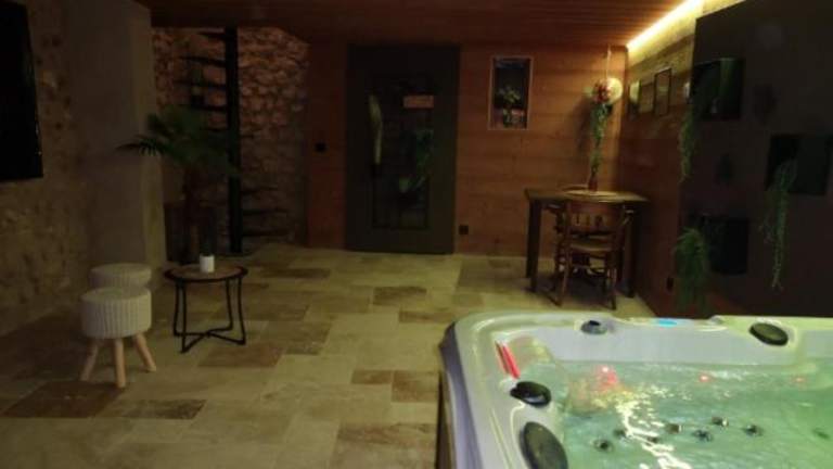 Maison Pérouges spa bietet Übernachtungsmöglichkeiten mit Zugang zu einem Whirlpool und kostenlosem Wifi in der gesamten Unterkunft. Es handelt sich um ein Ferienhaus, das eine angenehme Umgebung für einen erholsamen Aufenthalt bietet.
