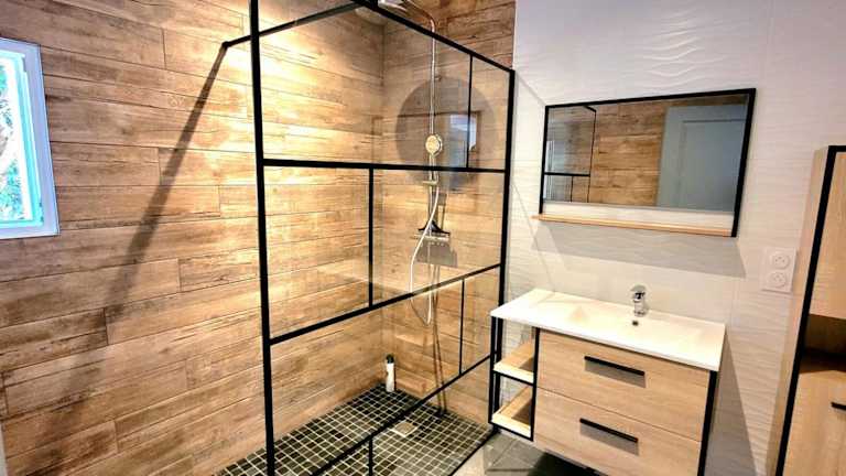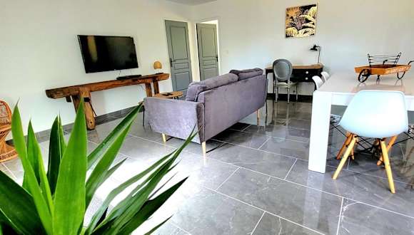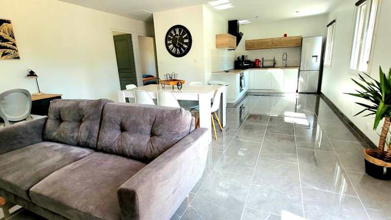 Die MAISON PLEIN-PIED DÉTENTE ASSUREE Clim-BBQ ist eine klimatisierte Unterkunft, die über einen Garten und eine Terrasse verfügt. Die Ferienunterkunft bietet Platz für bis zu drei Schlafzimmer mit einer modernen Einrichtung. Es handelt sich um eine Nichtraucherunterkunft, in der keine Junggesellen- oder ähnliche Feiern erlaubt sind.