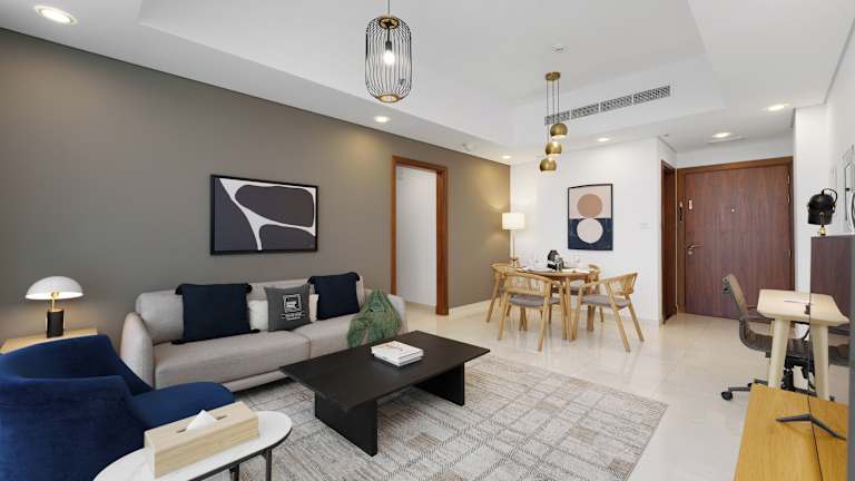 Die Unterkunft befindet sich im Bezirk Business Bay in Dubai, in der Nähe des Dubai Kanals. Die Umgebung bietet Zugang zu verschiedenen Attraktionen wie den Wasserspielen von Dubai, dem Burj Khalifa und der Dubai Mall.