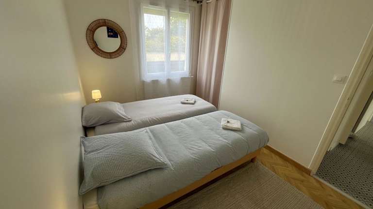 Das Ferienhaus befindet sich in Luc-sur-Mer, nur 12 Minuten zu Fuß vom Strand Plage du Petit Enfer und 5 Minuten vom Stadtzentrum entfernt. Die Umgebung bietet zudem Sehenswürdigkeiten wie das Museum Centre Juno Beach und das Museum Mémorial de Caen, beide in einer Entfernung von 13 bis 16 km. Der nächste Flughafen ist der Flughafen Caen-Carpiquet, der 23 km entfernt liegt.
