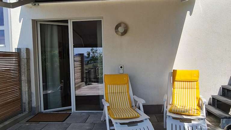 Die Ferienwohnung bietet Platz für bis zu zwei Personen und verfügt über ein Schlafzimmer, ein Wohnzimmer sowie eine gut ausgestattete Küche mit Kühlschrank und Ofen. Zur Ausstattung gehört ein Flachbild-TV sowie ein Badezimmer mit Dusche. Handtücher und Bettwäsche werden bereitgestellt. Eine Terrasse ermöglicht zusätzlichen Raum im Freien.