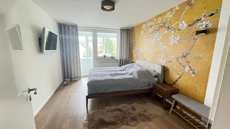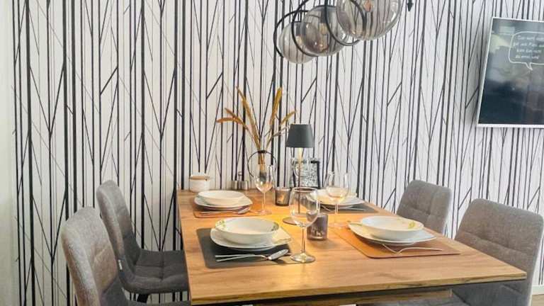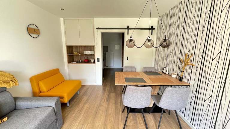 Die Ferienwohnung verfügt über ein Schlafzimmer, ein Wohnzimmer mit einem Flachbild-TV und Kabelkanälen sowie eine voll ausgestattete Küche mit Kühlschrank und Geschirrspüler. Das Badezimmer ist mit einem Haartrockner ausgestattet. Handtücher und Bettwäsche werden zur Verfügung gestellt.