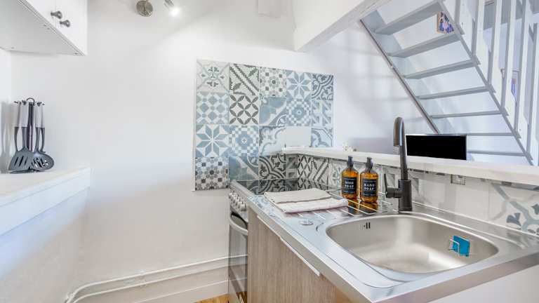 Die Ferienwohnung umfasst ein Schlafzimmer sowie eine Küche, die mit einem Kühlschrank und einem Ofen ausgestattet ist. Ein Flachbild-TV und ein Sitzbereich gehören ebenfalls zur Ausstattung. Das Badezimmer ist mit einer Dusche versehen und Handtücher sowie Bettwäsche werden bereitgestellt.
