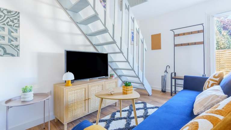Maisonnette Bleu Horizon avec jardin - 2min Gare - Serenito Homes zeichnet sich durch ein heimeliges Ambiente aus und bietet eine praktische Aufenthaltsmöglichkeit mit Garten. WLAN steht kostenfrei zur Verfügung, und es gibt eine Gemeinschaftsküche sowie eine Gemeinschaftslounge.