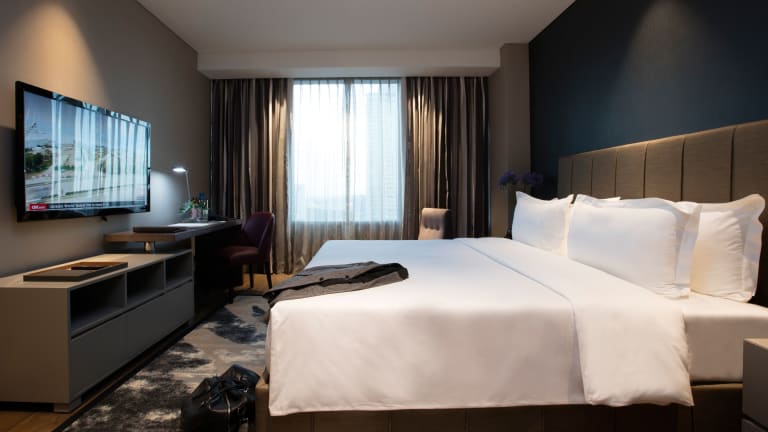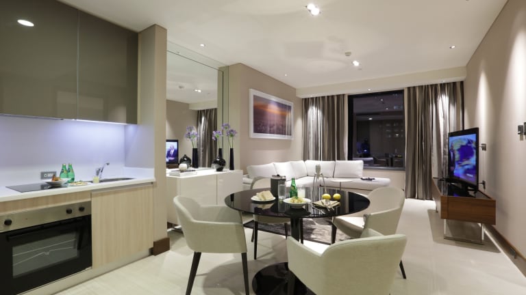 Die Zimmer sind stilvoll eingerichtet und verfügen über Annehmlichkeiten wie einen 55-Zoll-LED-TV, eine Minibar sowie eine Küchenzeile mit Kühlschrank und Mikrowelle. Die Badezimmer sind mit einer Badewanne und einer separaten Dusche ausgestattet. Zu den weiteren Annehmlichkeiten gehören ein Safe, kostenfreies Wifi und ein Bügelset. Es stehen sowohl Familien- als auch Nichtraucherzimmer zur Verfügung.