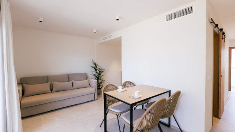 Die einfach dekorierten, klimatisierten Apartments verfügen jeweils über einen Balkon, einen Sitzbereich mit einem Sofa-Bett sowie einen Flachbild-TV. Die Küchen sind mit einem Mikrowellenherd, Kühlschrank, Backofen und Kaffeemaschine ausgestattet. Zudem steht kostenloses Wifi zur Verfügung, und es gibt einen Safe für persönliche Gegenstände. Der tägliche Reinigungsdienst sorgt für eine angenehme Bequemlichkeit während des Aufenthalts.