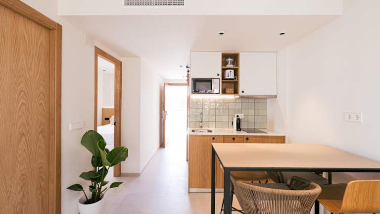 Das Malacosta A - MC Apartments Ibiza hat im Jahr 2025 eine umfassende Renovierung erfahren. Es weist eine einfache, aber geschmackvolle Gestaltung auf und verfügt über ein Restaurant. Die Ausstattung des Hauses schliesst einen Aufzug ein, der Zugang zu allen Etagen, inklusive dem Dachgeschoss, ermöglicht. Nach dem Check-out steht den Gästen ein Nutzung eines Zimmer für eine schnelle Dusche zur Verfügung.