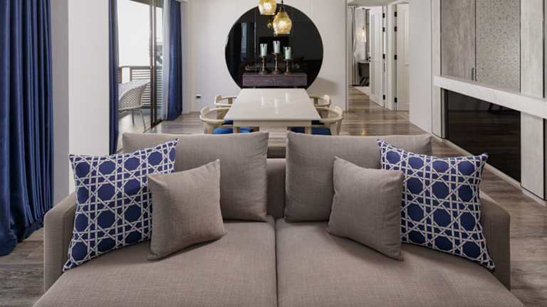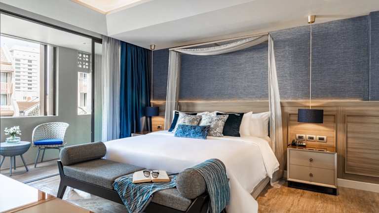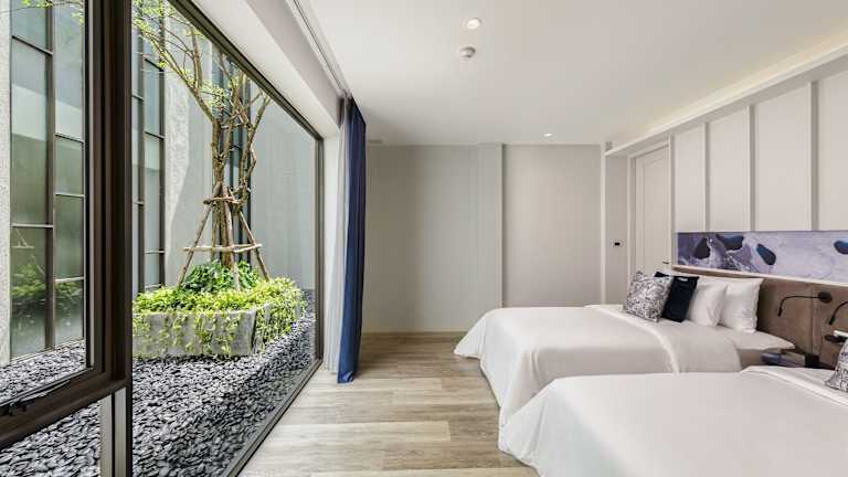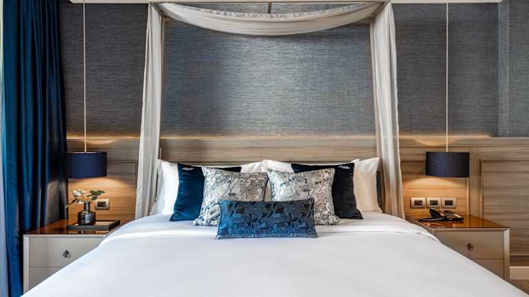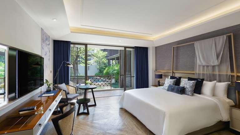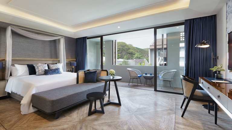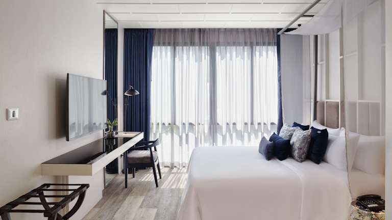 Die Zimmer sind klimatisiert und bieten eine komfortable Ausstattung mit Balkon oder Terrasse, Doppelbett, Sofabett, Minibar, Safe, Kühlschrank, Tee-/Kaffeemaschine und TV. Ein modernes Badezimmer mit Badewanne, Haartrockner, Bademänteln und Kosmetikartikeln sorgt für zusätzlichen Komfort.