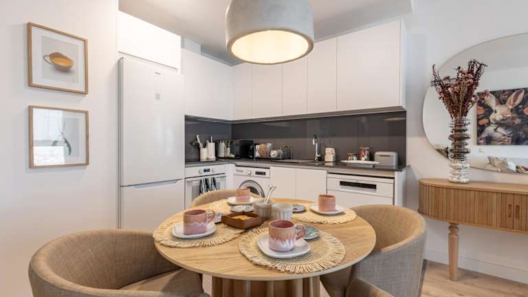 Die Unterkunft verfügt über eine voll ausgestattete Küche, die mit einem Kühlschrank, einem Geschirrspüler, einem Ofen, einer Mikrowelle, einem Toaster sowie einer Kaffeemaschine und einem Wasserkocher ausgestattet ist. Weitere gastronomische Details sind nicht angegeben.