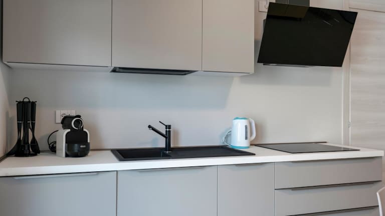 Die Apartments verfügen über eine voll ausgestattete Küche mit einem Essbereich. Es stehen alle nötigen Küchengeräte zur Verfügung, darunter ein Kühlschrank, Geschirrspüler, Ofen, Kaffeemaschine und Wasserkocher.