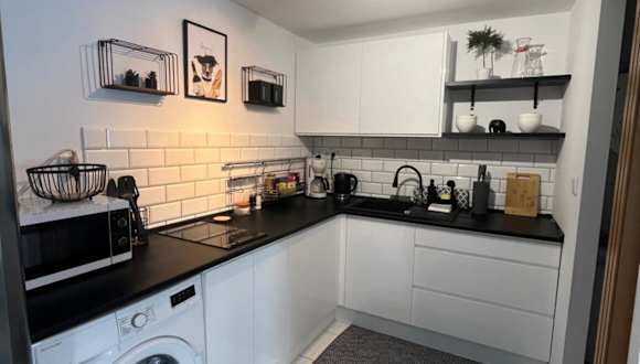 Die Ferienwohnung umfasst ein Schlafzimmer, ein Wohnzimmer und eine voll ausgestattete Küche mit Kühlschrank und Kaffeemaschine. Ein Badezimmer mit Dusche und kostenlosen Pflegeprodukten ist ebenfalls vorhanden. Handtücher und Bettwäsche werden bereitgestellt.