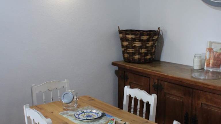 Das Ferienhaus umfasst ein Schlafzimmer, ein Wohnzimmer und eine gut ausgestattete Küche mit Kühlschrank und Ofen. Handtücher und Bettwäsche werden zur Verfügung gestellt.