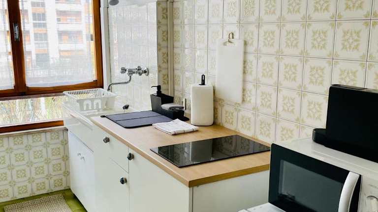 Die Ferienwohnung besteht aus 1 Schlafzimmer, einem Wohnzimmer sowie einer voll ausgestatteten Küchenzeile mit Kühlschrank und Kaffeemaschine. Zudem gibt es 1 Badezimmer mit Bidet und Dusche. Handtücher und Bettwäsche werden bereitgestellt.