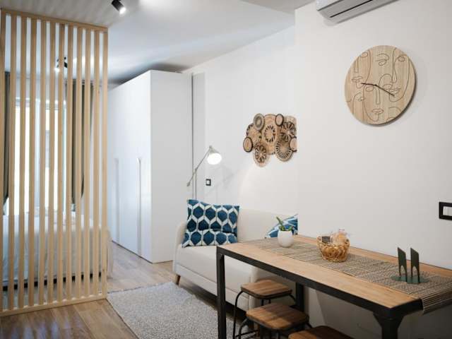 Die Ferienwohnung besteht aus einem Schlafzimmer, einem heimeligen Wohnzimmer, einer voll ausgestatteten Küche mit Kühlschrank und Kaffeemaschine sowie einem Badezimmer mit Dusche. Ein Flachbild-TV steht ebenfalls zur Verfügung.