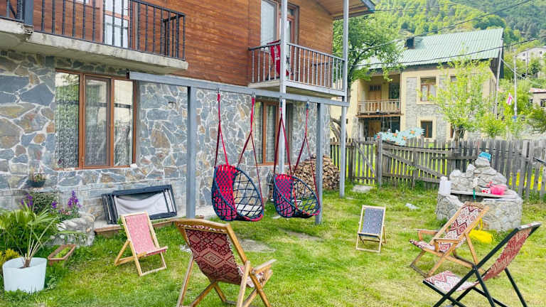 Das Manana's Guesthouse in Mestia bietet haustierfreundliche Unterkünfte mit kostenfreiem WLAN. Die Pension ist ideal für alle, die die Natur und die Skimöglichkeiten der Umgebung genießen möchten. Mit kostenfreien Privatparkplätzen, einem Fahrradverleih und einem Mietwagenservice bietet die Pension auch praktische Annehmlichkeiten für einen unbeschwerten Aufenthalt.