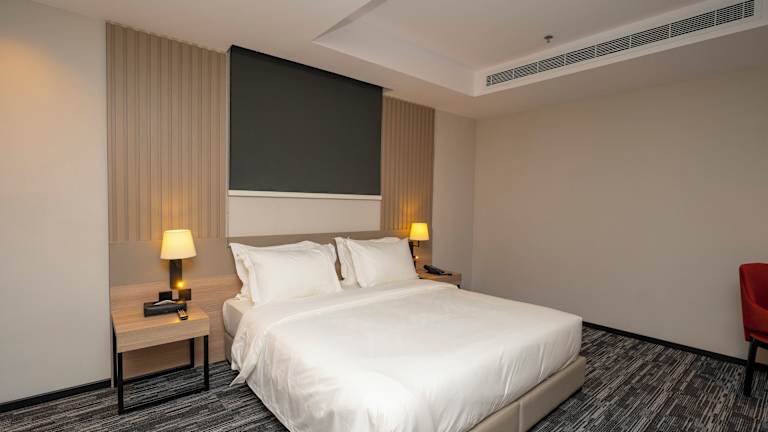 Die Zimmer sind modern und elegant eingerichtet und verfügen über Heizung, Klimaanlage, Minibar, Kabel-TV, Safe sowie teilweise über einen Wohnbereich und Küchenzeile. Weitere Annehmlichkeiten sind ein Zimmerservice und rollstuhlgerechte Zimmer.
