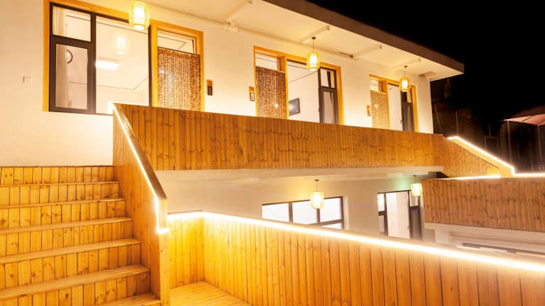 In der Unterkunft wird ein vegetarisches Frühstück angeboten. Es besteht die Möglichkeit, spezielle Ernährungsbedürfnisse auf Anfrage zu berücksichtigen, sowie Essenslieferungen in die Unterkunft zu erhalten. Das Restaurant vor Ort bietet eine Auswahl an Speisen.