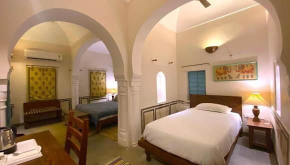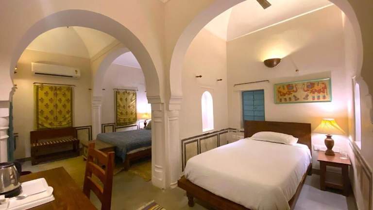 Die Zimmer in Mandawa Kothi sind gemütlich eingerichtet und bieten moderne Annehmlichkeiten. Sie sind klimatisiert und verfügen über einen Zimmerservice sowie WLAN, das in allen Bereichen des Hotels gratis zur Verfügung steht. Familienzimmer sind ebenfalls verfügbar.