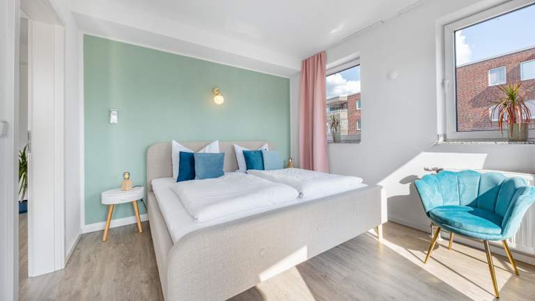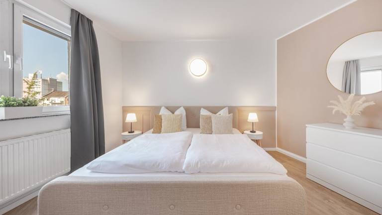 Mango Living I Apartment Hideaway I modern I 2 Schlafzimmer I 77qm ist eine moderne Ferienwohnung mit einem Balkon, die einen Blick auf die Stadt bietet. Die Unterkunft ist mit kostenlosem Wifi in der ganzen Wohnung ausgestattet und bietet eine heimelige Atmosphäre.