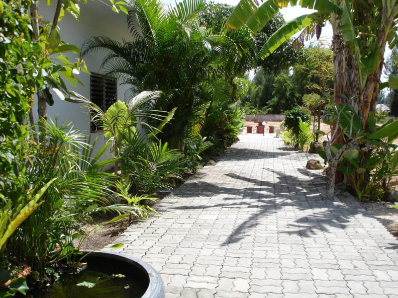 Wir vermieten momentan 3 Zimmer zu 24 m2 mit WC/Dusche mit Doppel und Einzelbetten. Deckenventilatoren ohne Aircon, da im Grünen und halb gedeckt.