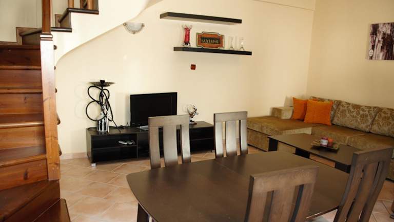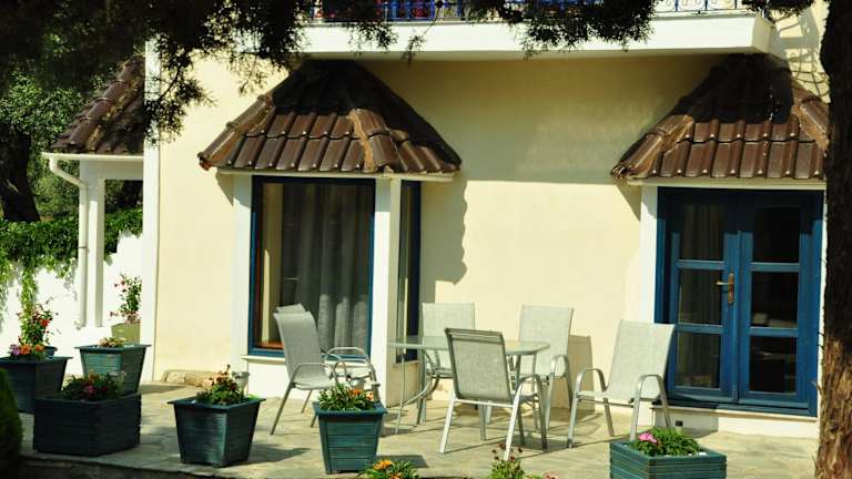 Die Zimmer in den Mani Villas sind mit einem Satelliten-Flachbild-TV, einem Sitzbereich und einem eigenen Badezimmer mit Badewanne und Haartrockner ausgestattet. Zur Ausstattung gehören auch Allergikerfreundliche Zimmer, Klimaanlage sowie kostenloses Wi-Fi und eine Möblierung auf der Terrasse.