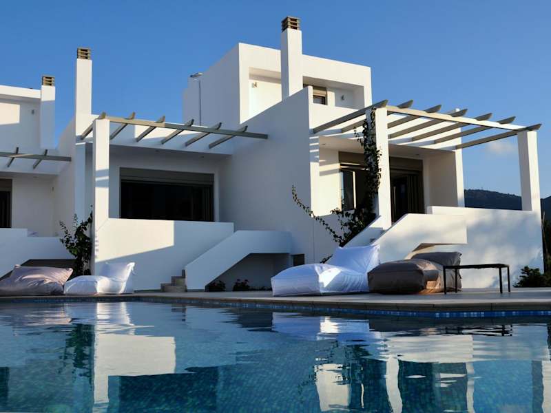 Die Apartments sind mit einem Flachbild-TV und einem Balkon ausgestattet, der sowohl Berg- als auch Meerblick bietet. Jedes Apartment verfügt über eine voll ausgestattete Küche mit Kühlschrank und Küchenutensilien. Die Badezimmer sind mit Badewanne, Haartrockner und kostenfreien Pflegeprodukten ausgestattet. Die grossen Villen haben zusätzlich einen kleinen privaten Pool und befinden sich in der obersten Etage des Gebäudes.
